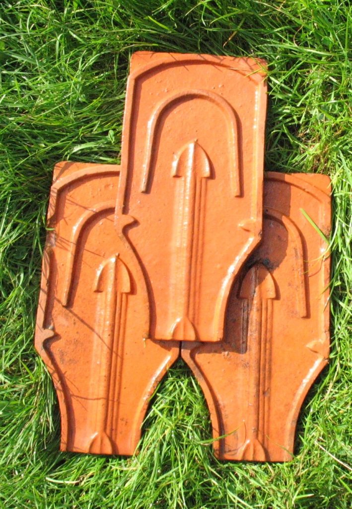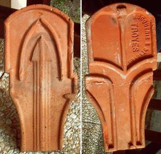 Maxey : : Propriétaire non déterminé. Deux sortes de tuiles sont estampillées Maxey-sur-Meuse . Une tuile que l on peut qualifier de conventionnelle avec une fléche centrée. Une seconde avec un losange en lieu et place de la flèche. La chapelle de Beauregard dominant ce village est encore couverte de tuile violon