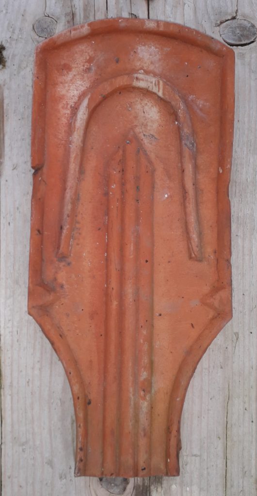 provenant d’un toit d’Ampilly les Bordes et installé désormais sur une petite dépendance à Bouze les Beaune cette tuile semble être une évolution de la tuile violon à partie supérieure circulaire